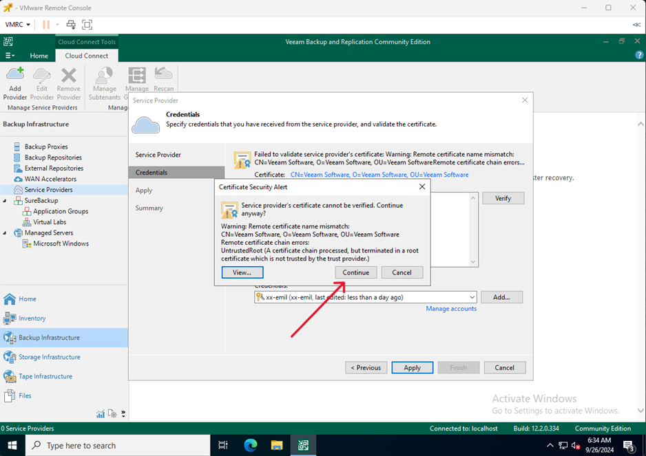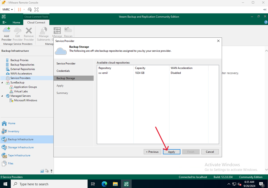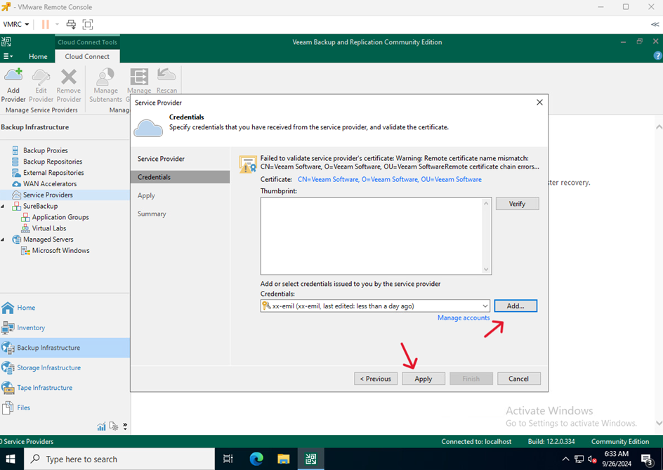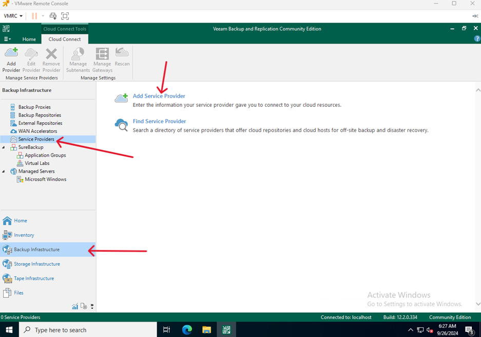 • Przejdź do Backup Infrastructure > Service Providers i kliknij Add Service Provider