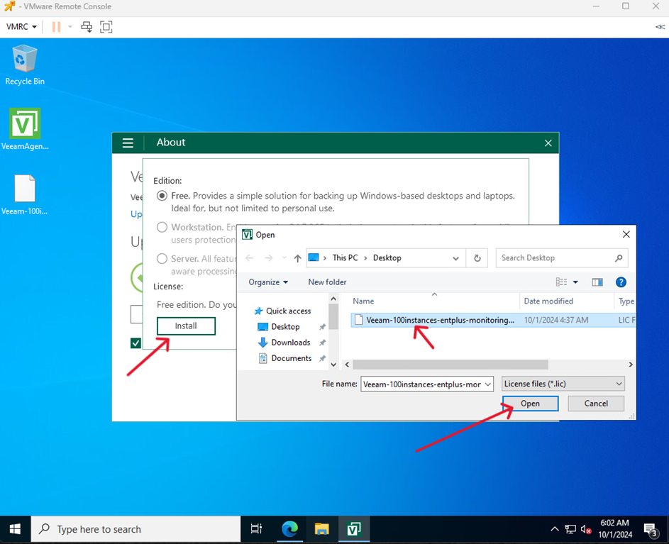 Instalacja licencji Veeam Agent