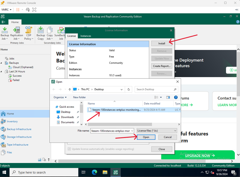 Przygotuj plik licencyjny i uruchom Veeam Backup & Replication.