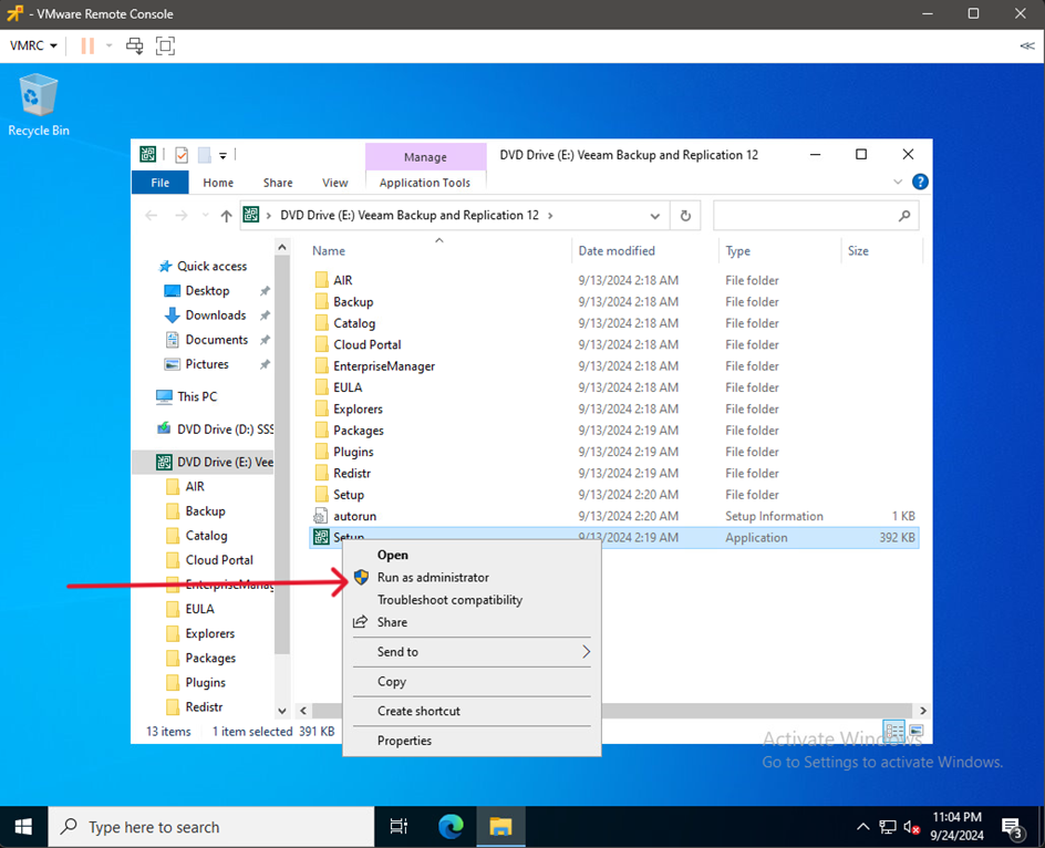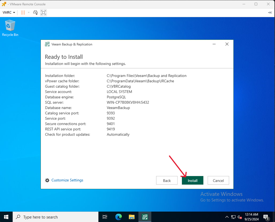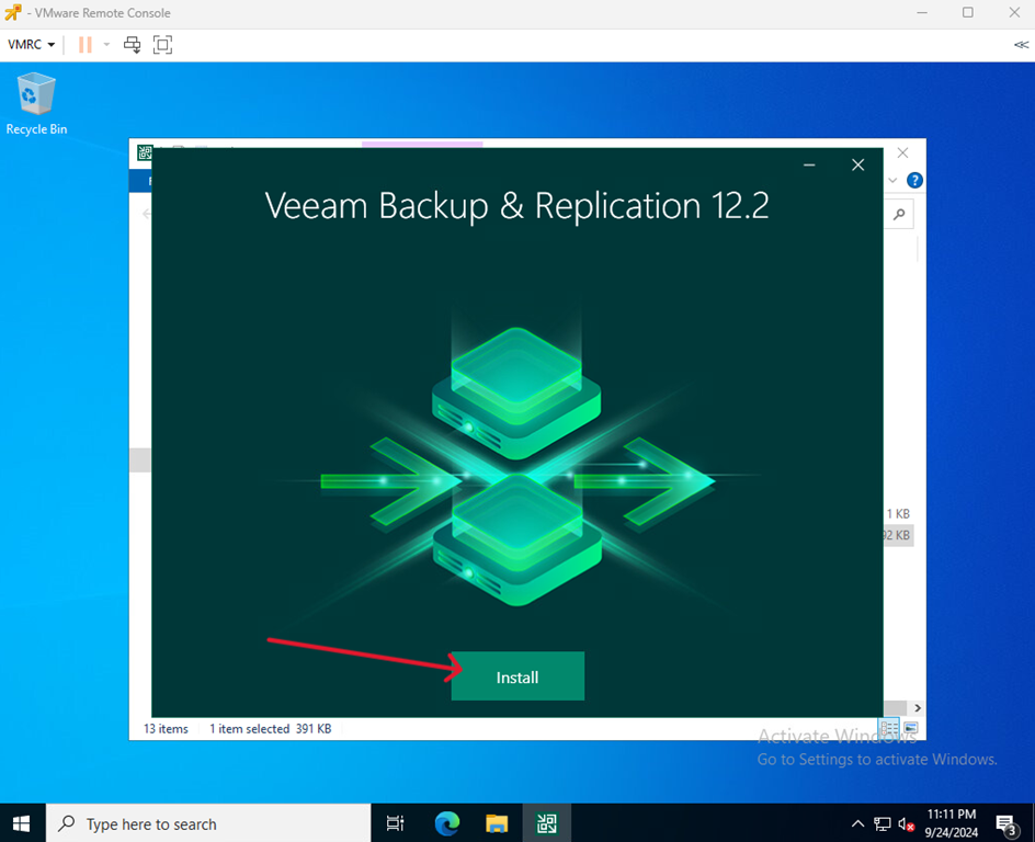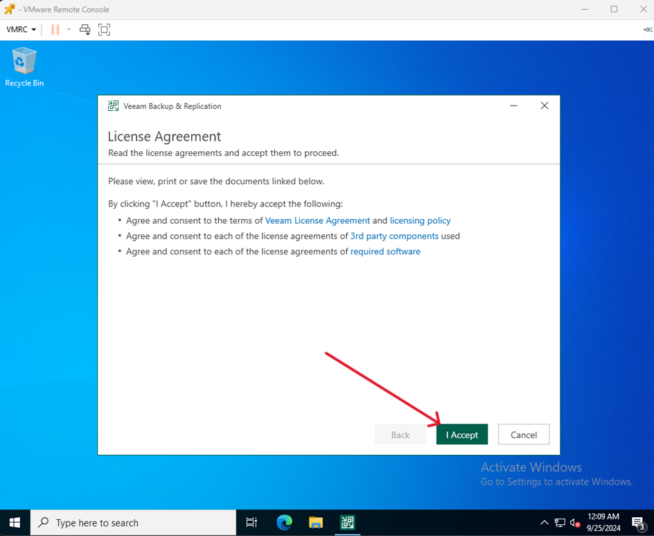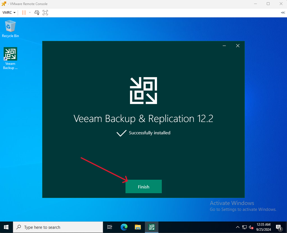 - Przejdź do widoku VM, która będzie pełnić rolę Veam Serwer.