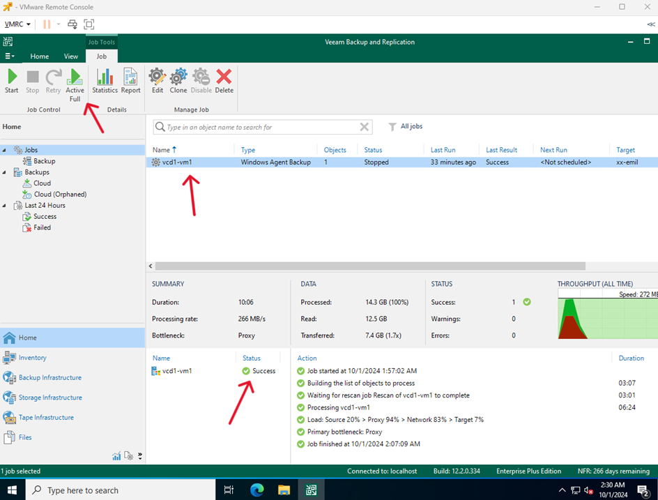 - Zaznacz utworzone zadanie, wybierz Active Full i poczekaj, aż proces się zakończy.